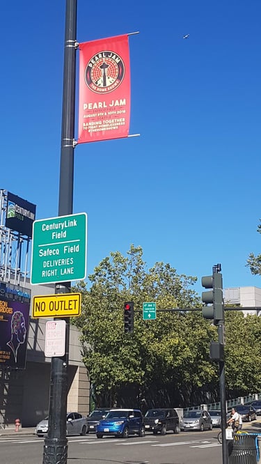 Mesmo com toda essa dimensão, para mim, estar ali era sentir a cidade pulsando com uma parte da minha própria trilha sonora. Ver anúncios do evento no aeroporto, nas estações de metrô, nos ônibus e nos muros de Seattle era ver que a cidade inteira estava respirando Pearl Jam — e como a música consegue ter um papel importante e grandioso quando abraça causas sociais.